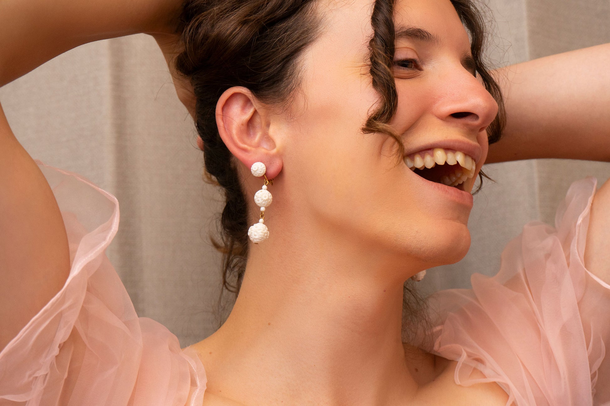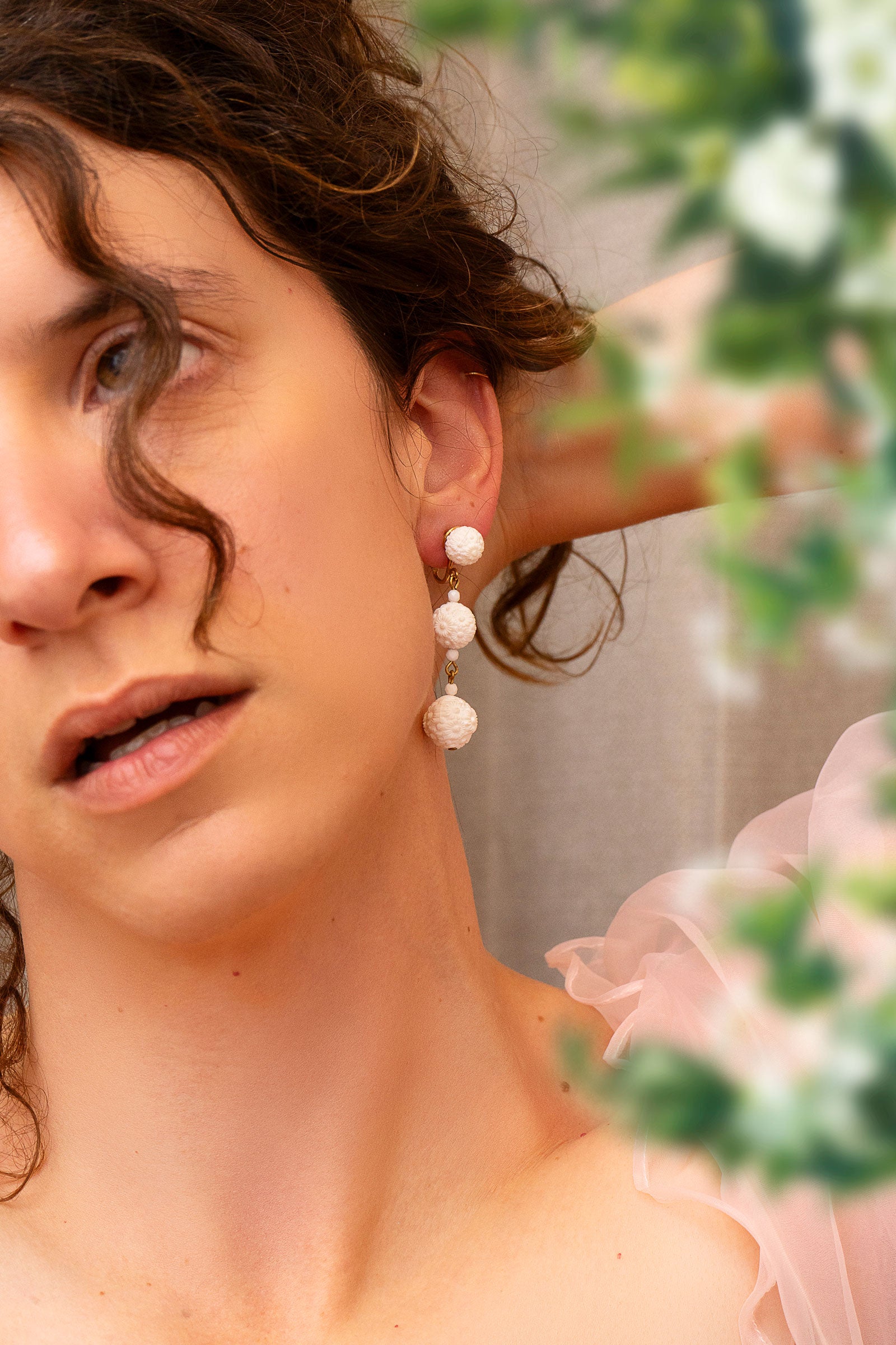 These earrings are sourced from Alameda, California by designer Anthony. These pieces are all one of one.