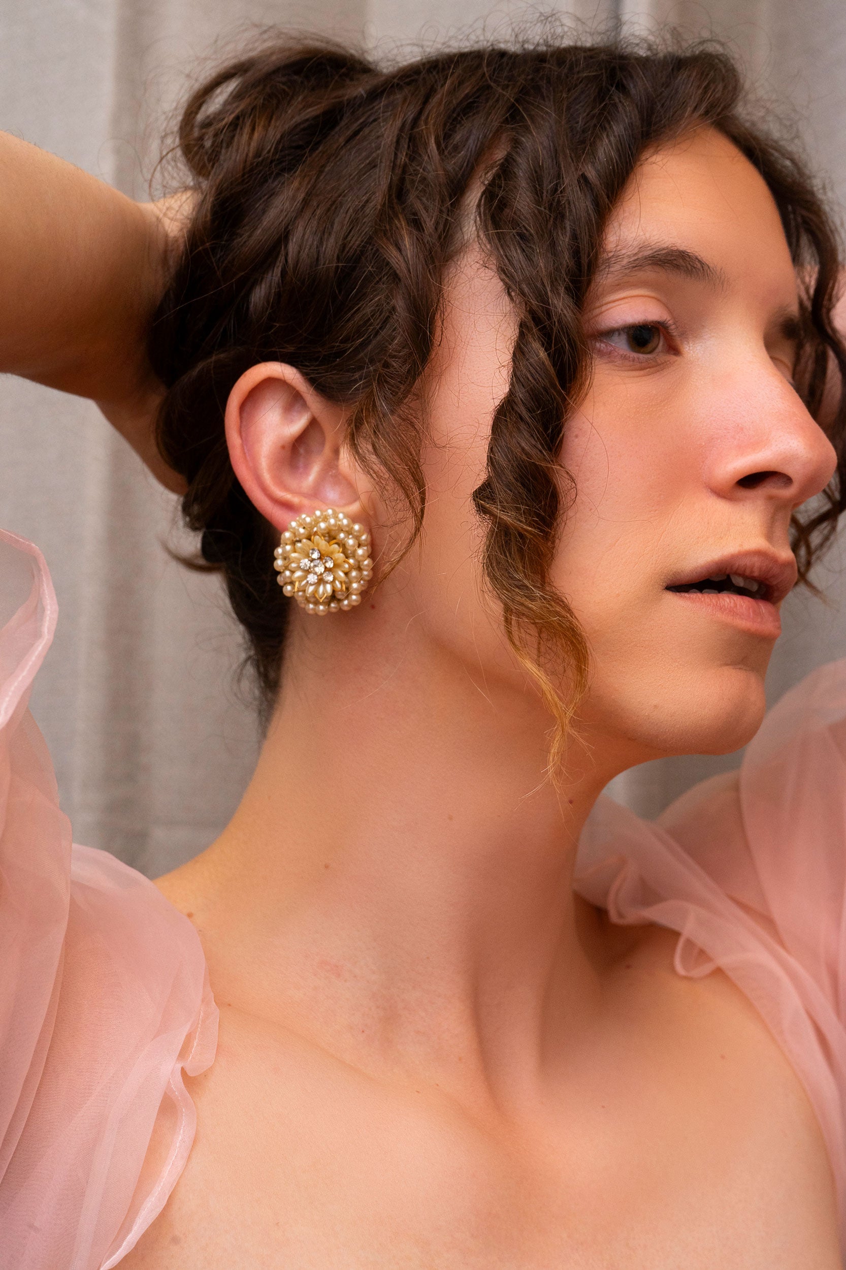 Beautifully hand beaded vintage treasures. Beaded and studded floral aesthetic clip on earrings.