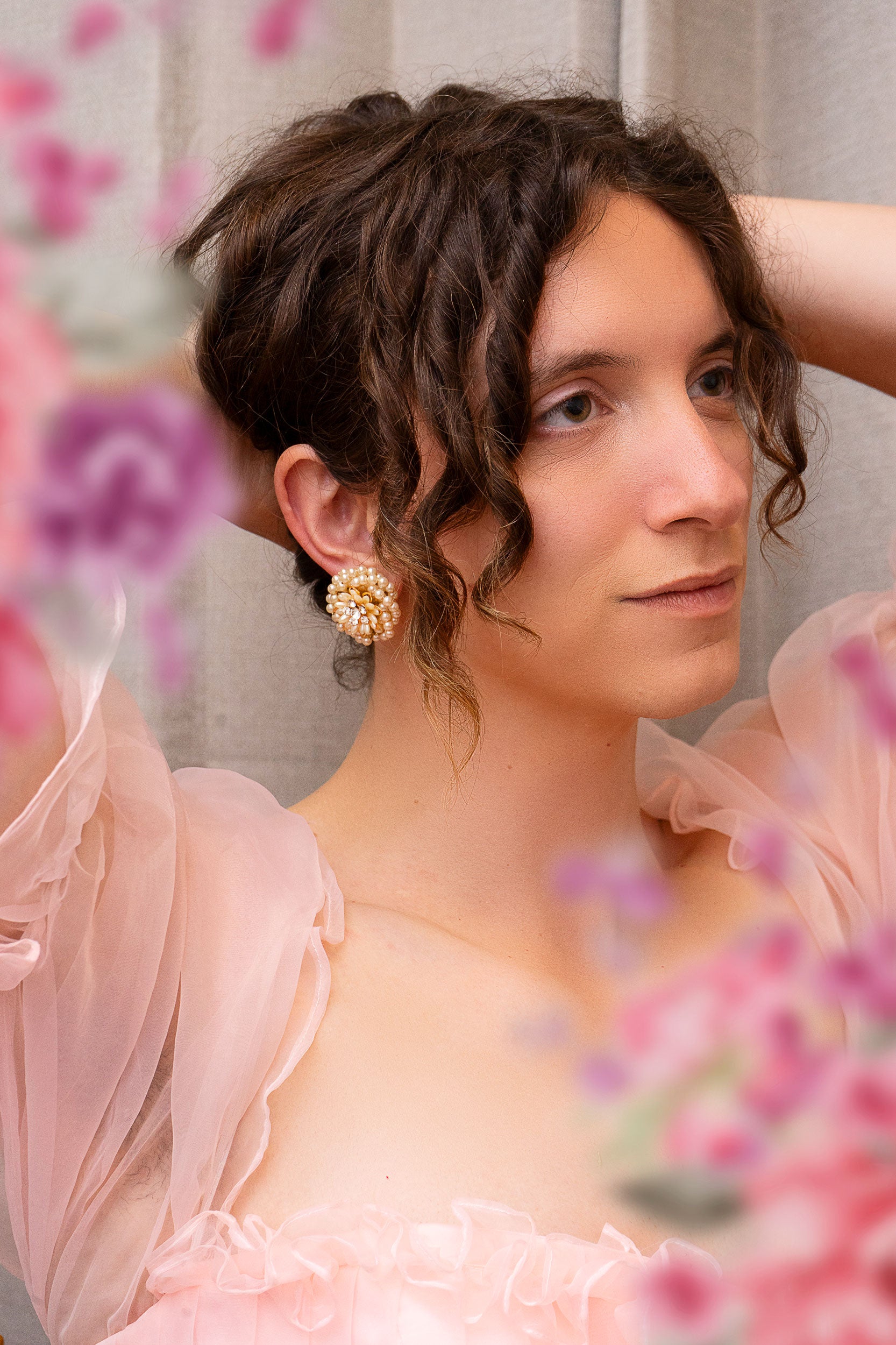These earrings are sourced from Alameda, California by designer Anthony. These pieces are all one of one.