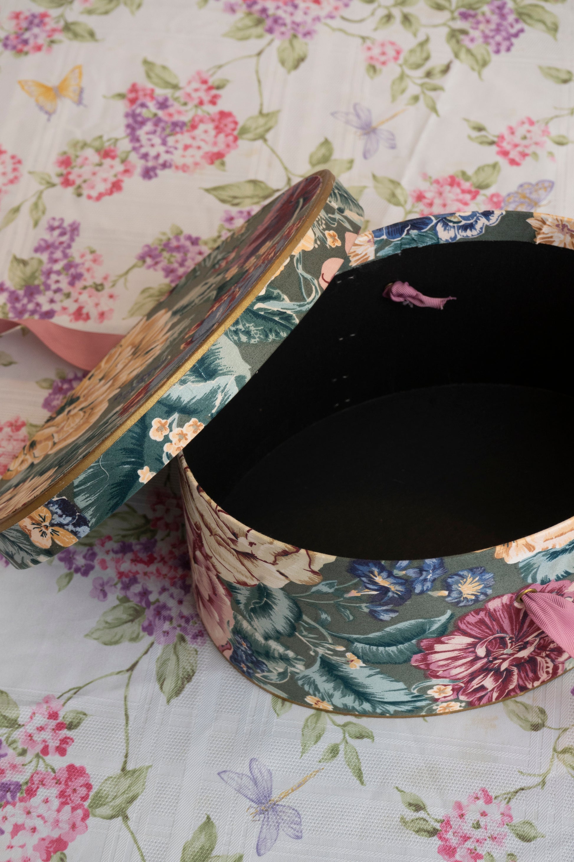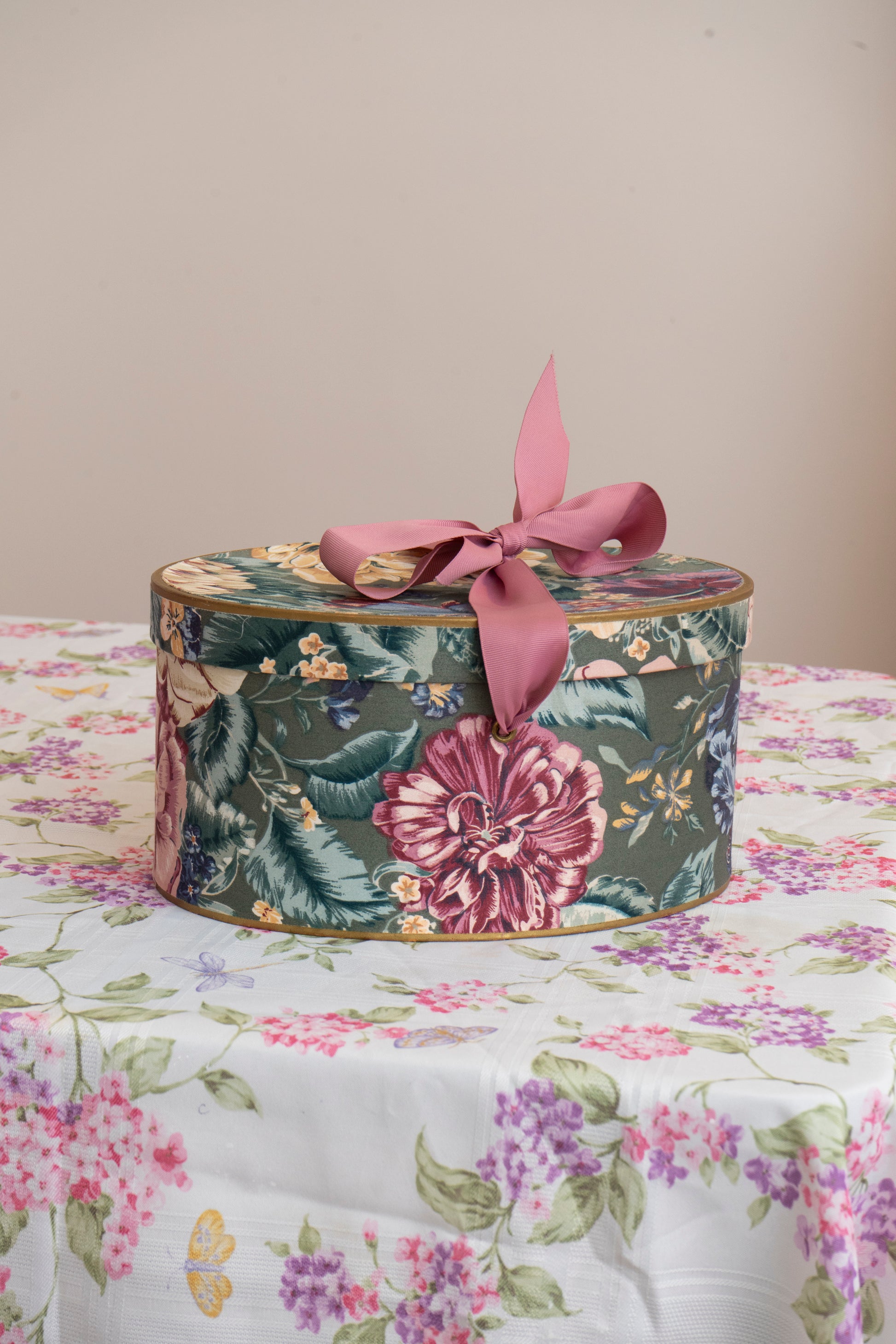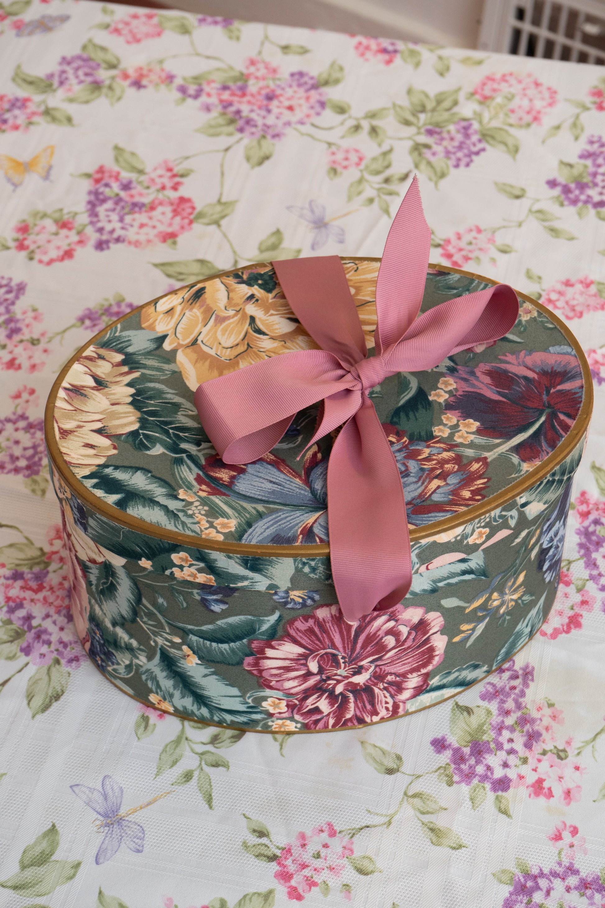 Vintage Floral Deco Textured Hat Box
