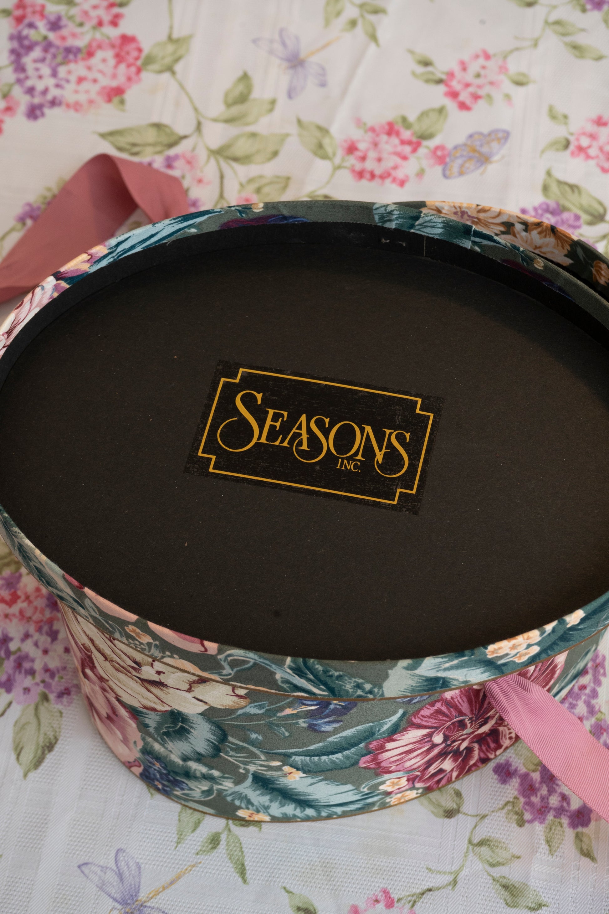This Seasons hat box is perfect for storing knick-knacks and other treasures beautifully.