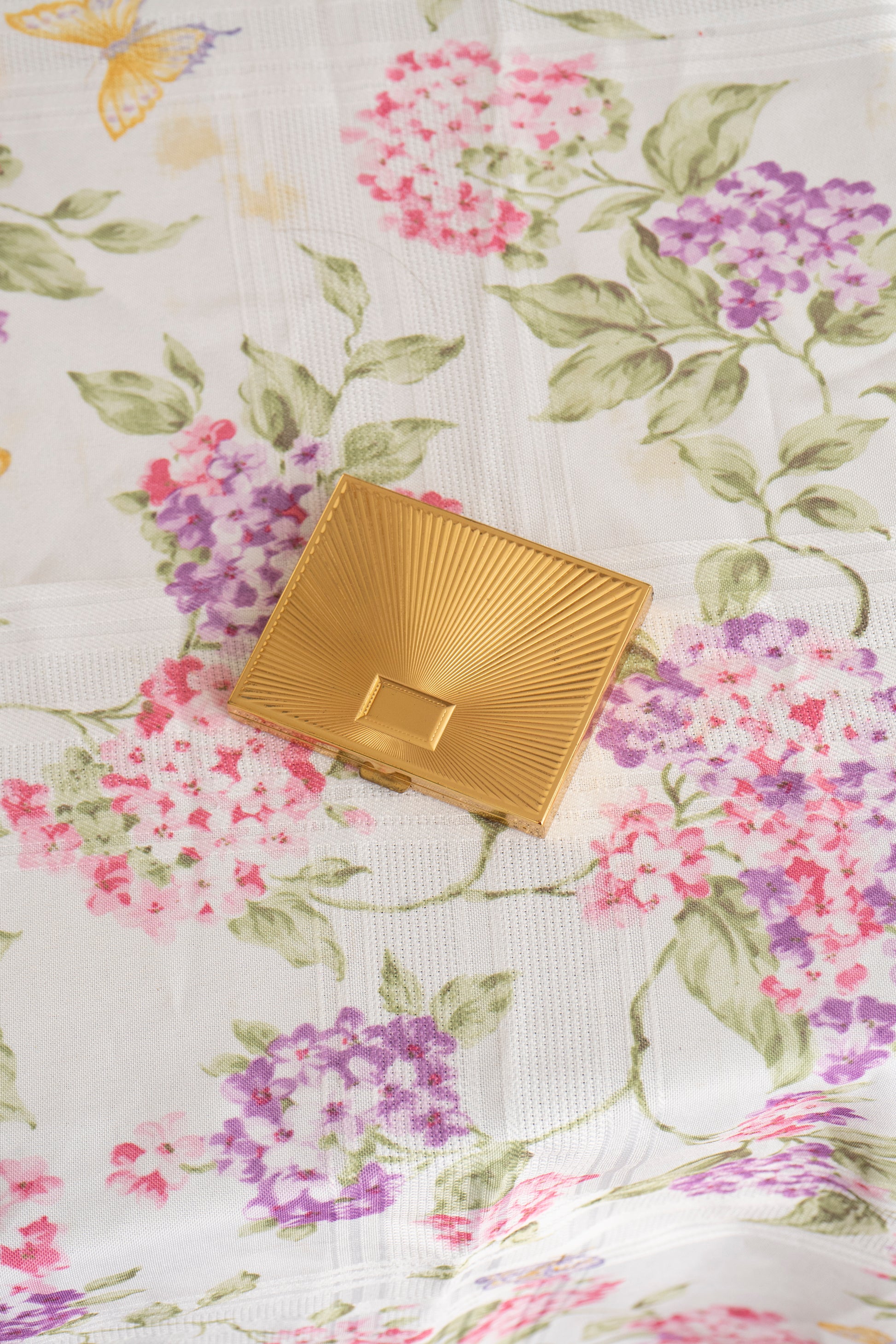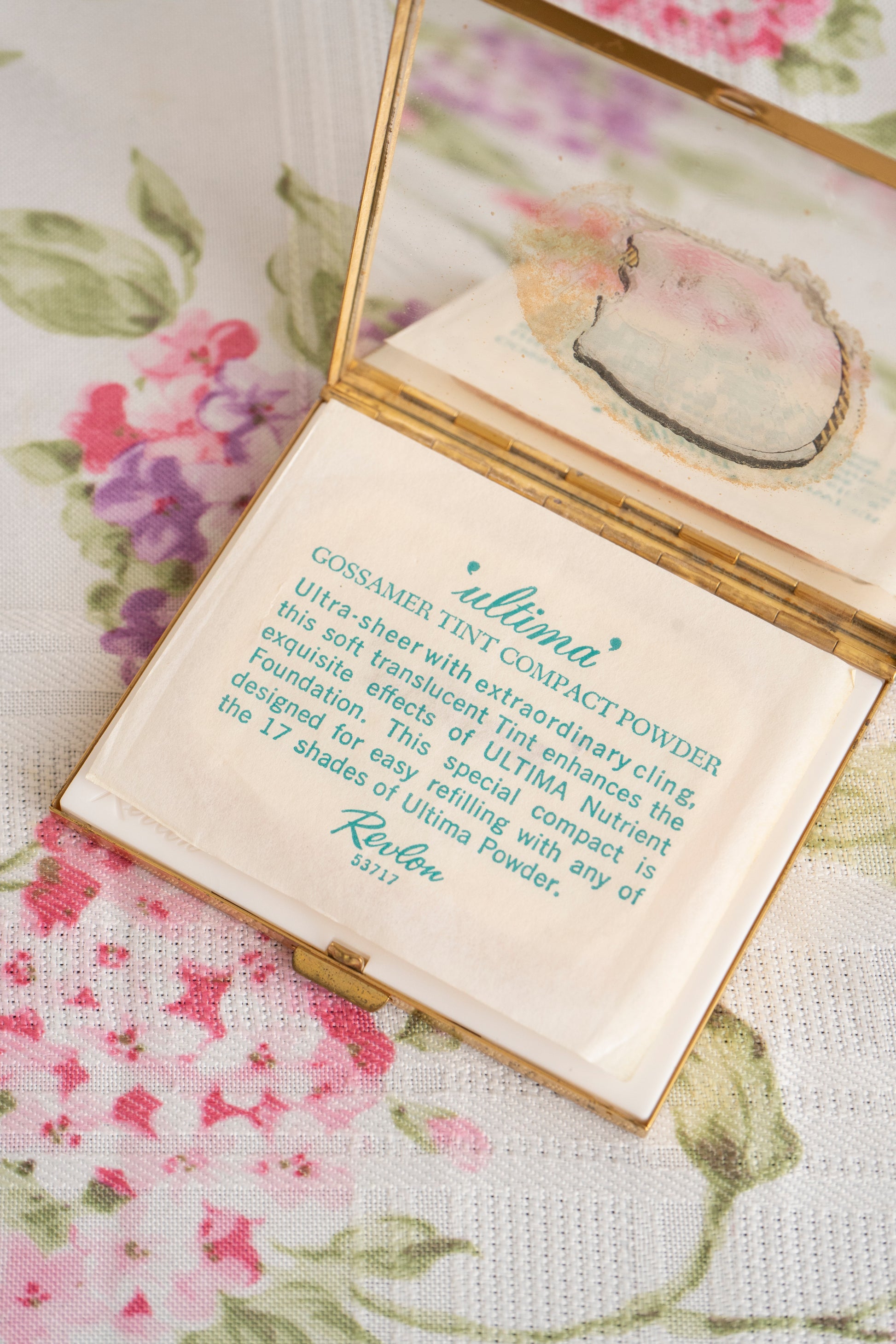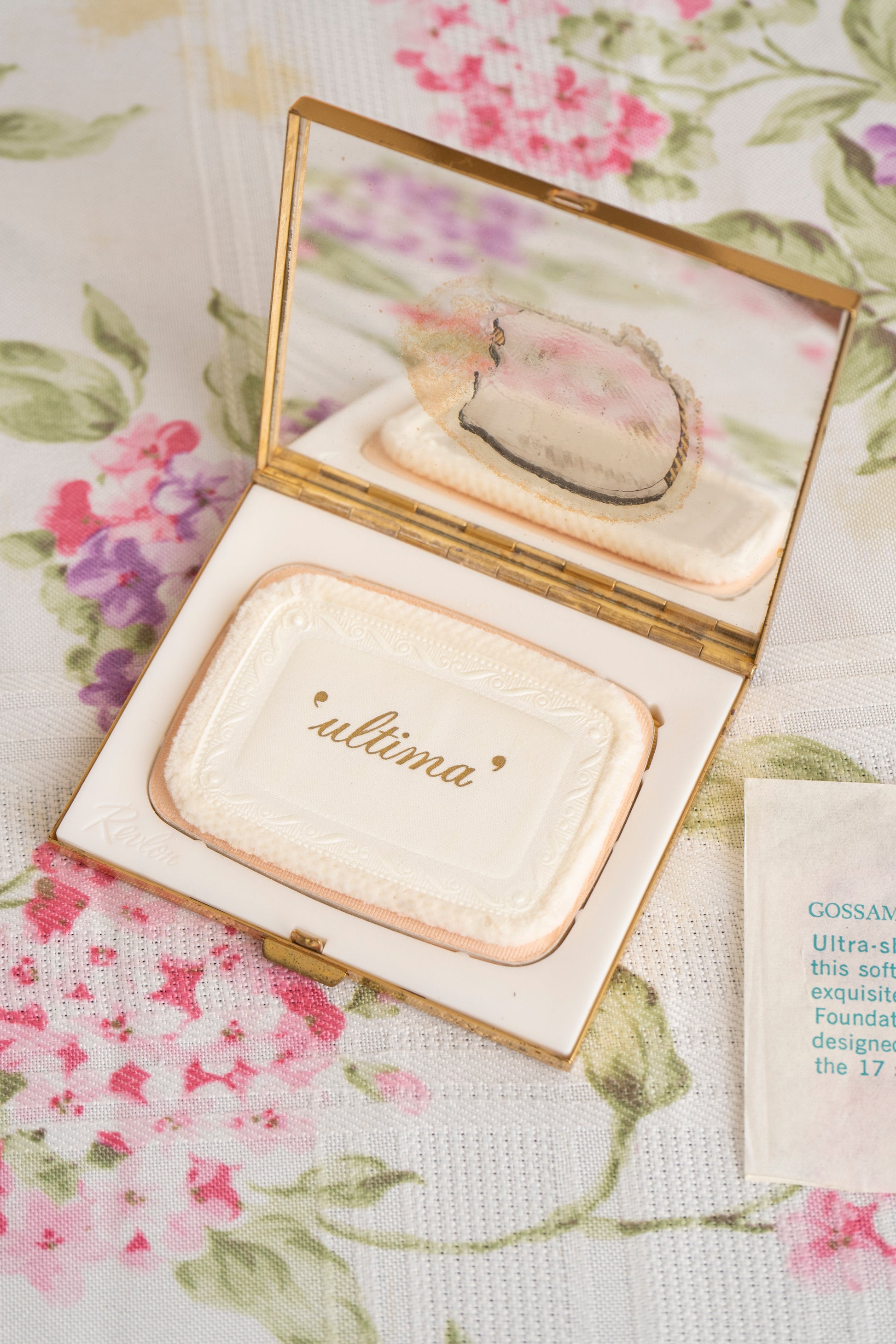 Ultima by Revlon was introduced in 1945 and this pink setting powder was created and marketed in 1965. An ode to the art deco movement in this particular collection.